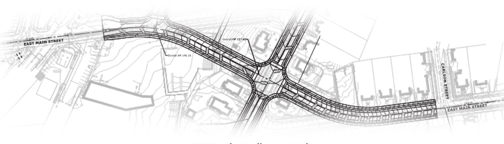 Phase 1 of the Beeline Trail will come out at the Lincoln/ West Main Street intersection shown here before proposed artwork mural.