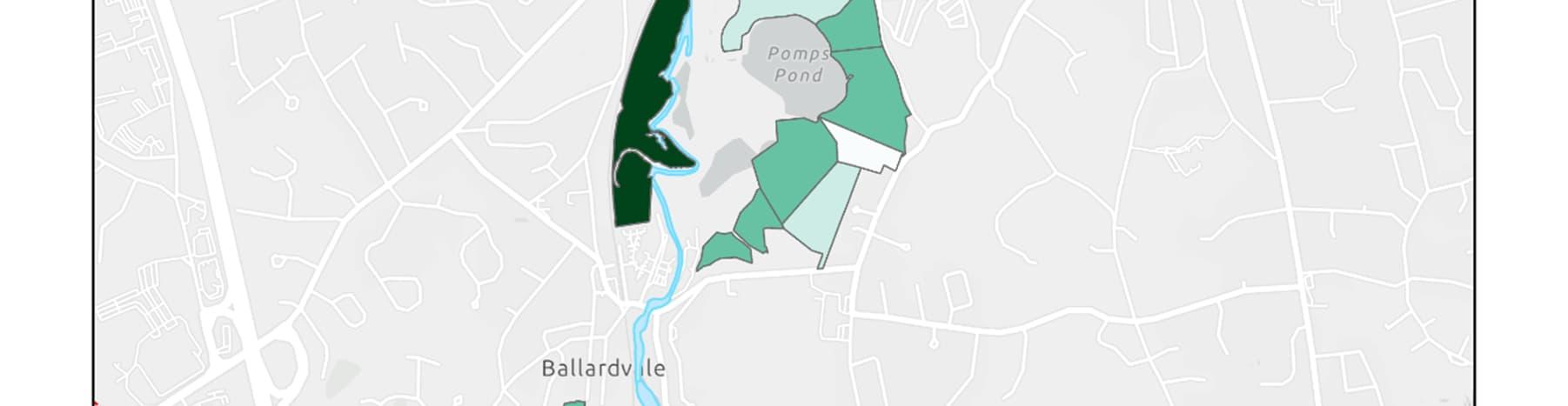 The top-ranked and fifth-ranked existing preserved parcels – parcels 138-10 and 93-9 – are part of the Vale Reservation, which is owned and managed by the Andover Village Improvement Society (AVIS). These parcels scored well above average for existing environmental conditions, community enhancement potential, and climate resilience potential. These parcels are well connected to the surrounding protected lands and trail networks, and they were identified as having several areas for increased flood storage potential.