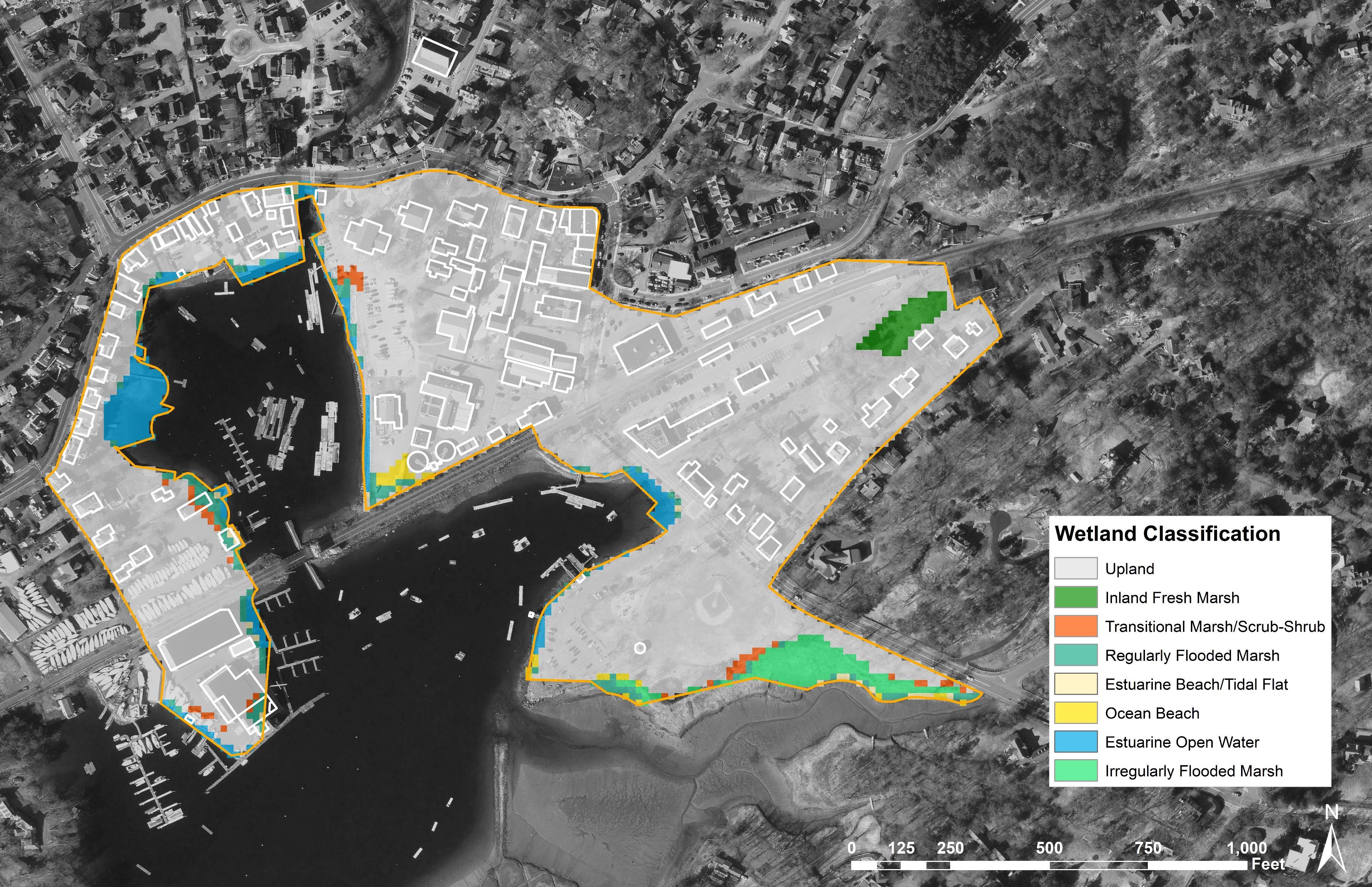 The second phase of the project built upon the 2017 town-wide vulnerability and risk assessment completed as part of the 2017 FEMA Hazard Mitigation Plan Enhancement (Tighe & Bond, 2017), narrowing the focus to the inner harbor and downtown. An updated vulnerability assessment was completed to assess current and future flooding and water surface elevations – along with projected habitat change as a result of sea level rise.