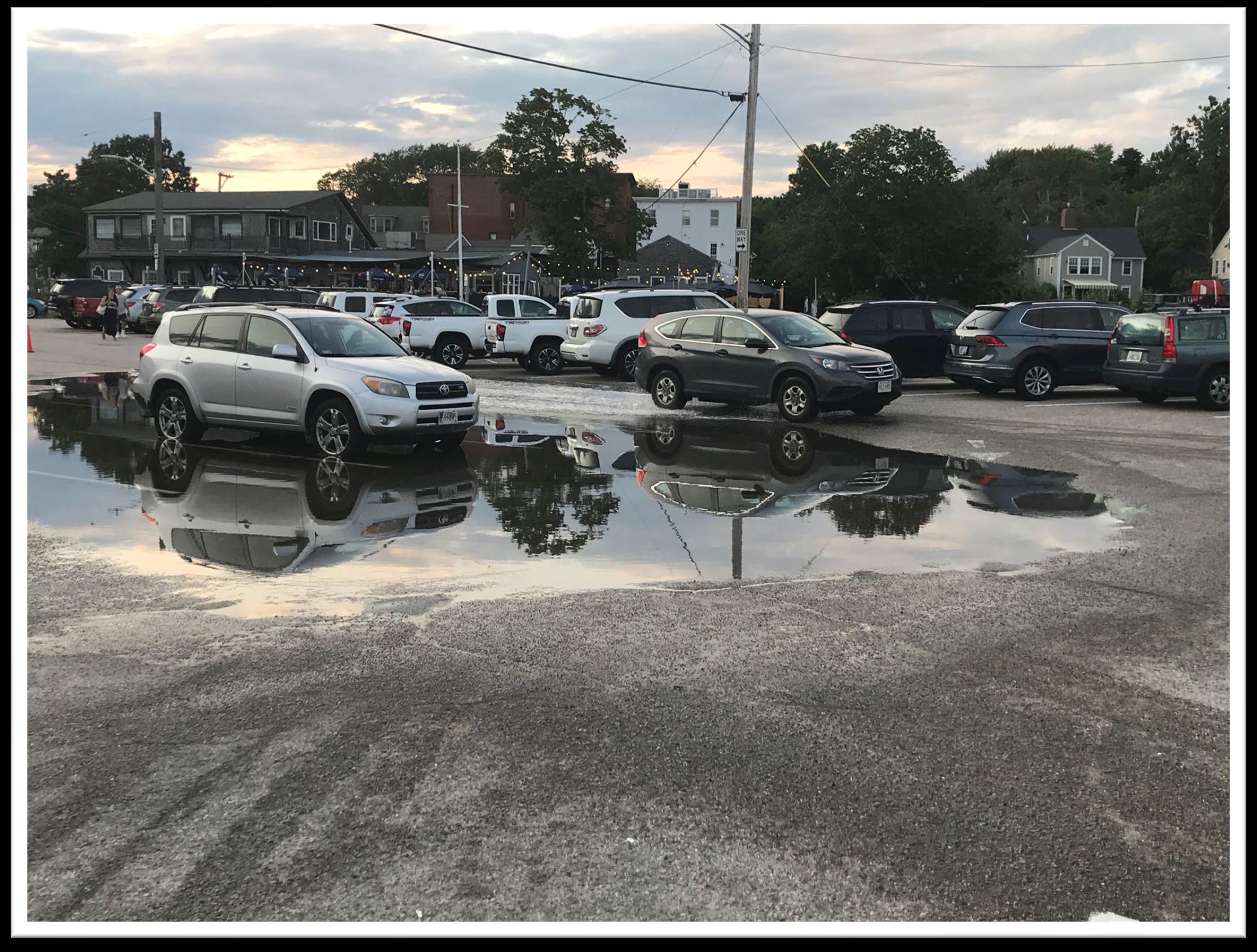 The 10% annual exceedance chance flood (or “10-year flood”) and the 10% annual exceedance chance flood with 3 feet of sea level rise (SLR) from STORMTOOLS were selected to assess current and future projected coastal flood risk exposure. The 10% flood layer provides a baseline for existing coastal risk exposure to current-day nuisance flooding, while the 10% flood with 3 feet SLR layer models the anticipated increased extent and depth of this event under projected future conditions. Using these two risk scenarios, the current risk to infrastructure and properties from common coastal storms could be compared to the future projected risk in each of the coastal main street districts included in Ready, Set, Rhody.