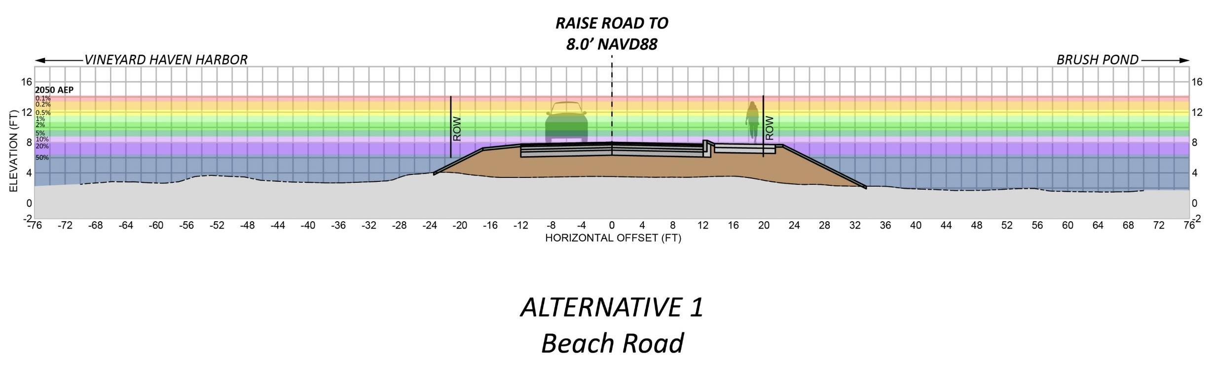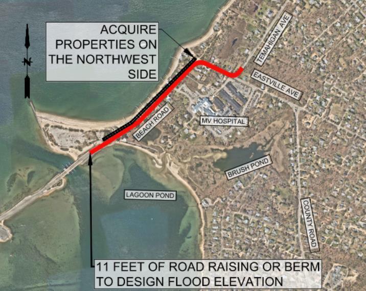Solution Native vegetation stabilized side slopes; enhance Eastville barrier beach/dune, Vineyard Haven Harbor wave attenuation strategies; enhance Brush Pond barrier beach/dune