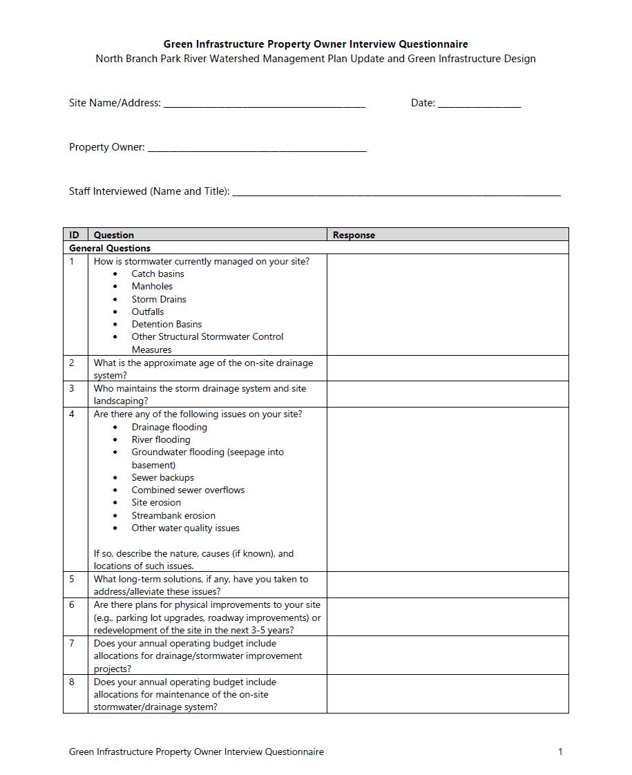• Property owner interviews
