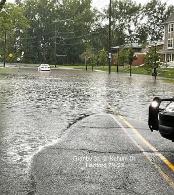 The North Branch Park River flows into an underground flood control conduit just upstream of Farmington Avenue. The conduit carries the North Branch for another 0.5 mile to its confluence beneath I-84 with the South Branch Park River forming the Park River, which flows underground for roughly 2.5 miles to the Connecticut River.