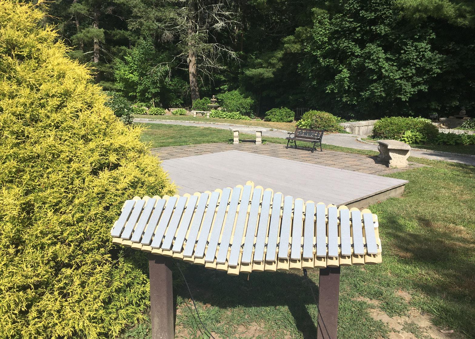 Outdoor spaces are a great location for sensory development. The West Parish Garden Cemetery in figure 44 has a children’s sensory garden which offers instruments, seating, fragrant herbs and more.