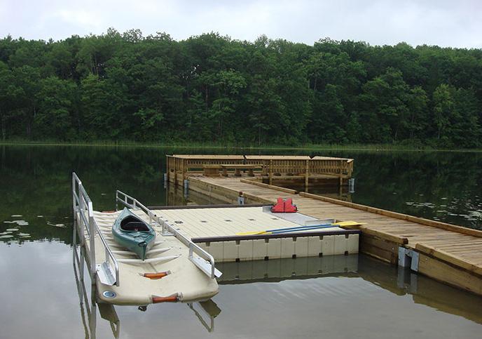 Gains; Comfortable outdoors because of adequate shade, ADA compliant Kayak Launch.