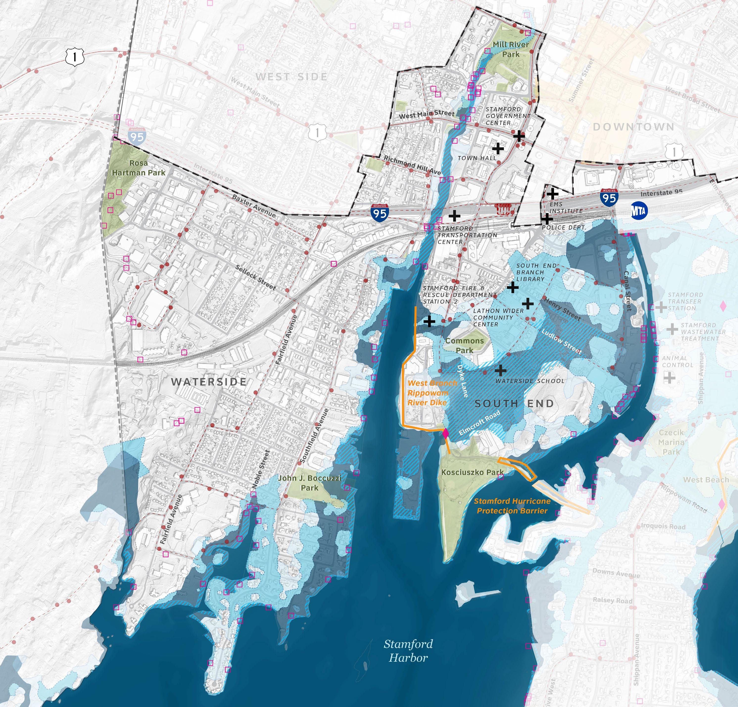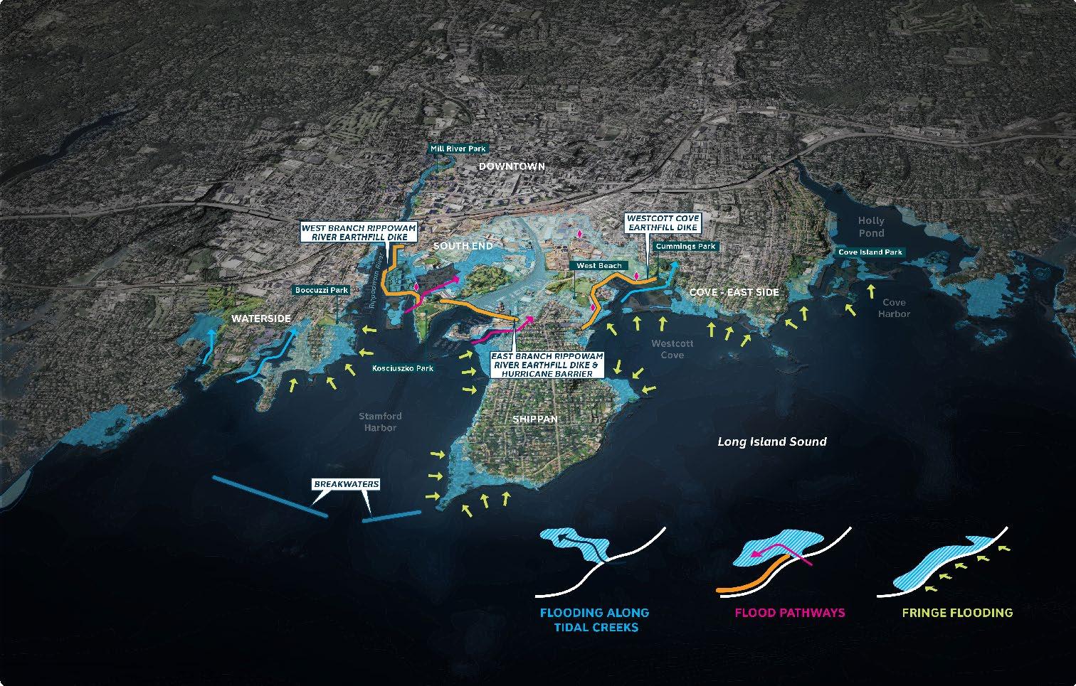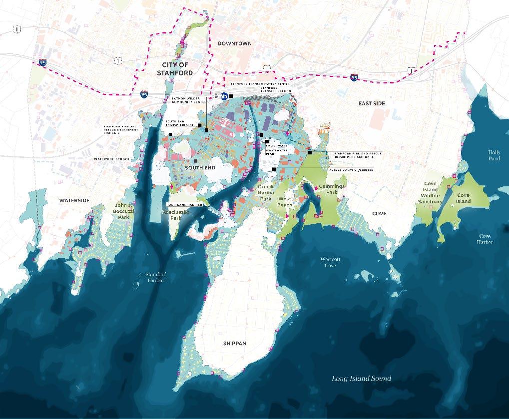 The City of Stamford and a Technical Advisory Committee is working with Fuss & O’Neill, SCAPE Landscape Architecture, and Woods Hole Group over the next year to reduce risk & take action against growing coastal flood risks.