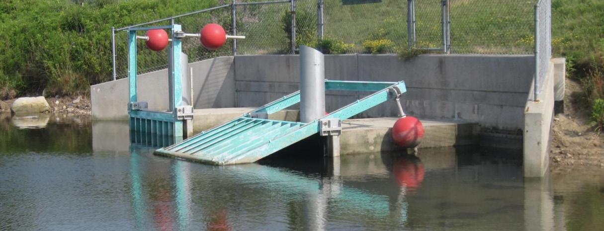 Tide gates are one-way valves for water, found at the openings of streams, culverts, or under small bridges. When water levels rise, tide gates close automatically or manually per type. This acts as a barrier, stopping saltwater from flowing inland and preventing flooding of homes, roads, and natural areas. When water levels are low enough, the gates remain open, allowing freshwater to drain out into the bay or ocean, which prevents inland flooding from backed-up freshwater.