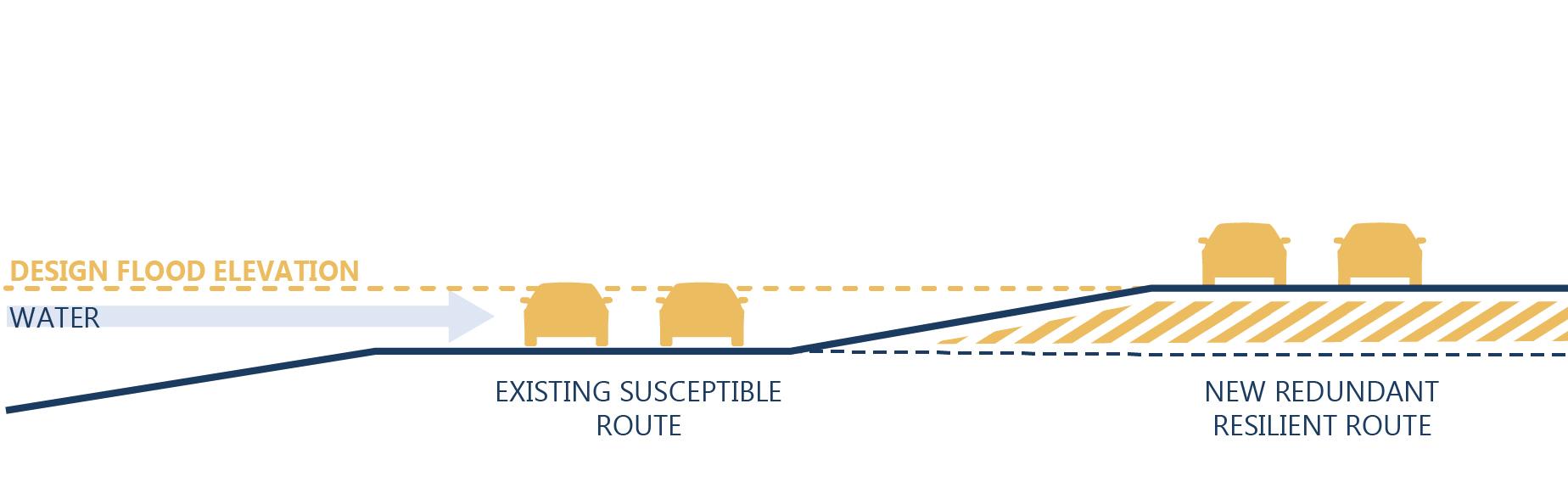 By creating redundant routes, residents and emergency services can have mobility options during flood events when other, more susceptible routes are impassible. This strategy applies to instances where critical emergency routes are often compromised by floodwaters.