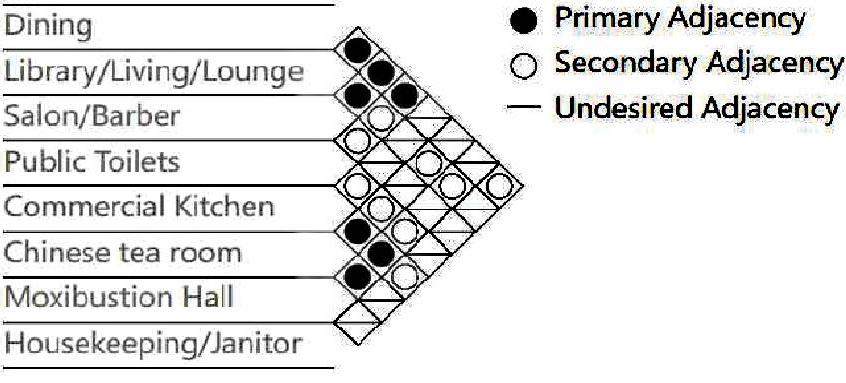 Compared with the first floor, the space on the second floor is simpler. The circulation pathis a rectangle, saving the distance. The circulation path isarectangle, allowing residents to quickly getto where they want to go. This makes the lives of residents more convenient. The garden on the north side allows the tea room and Moxibustion Hall to have better air quality and green environment.