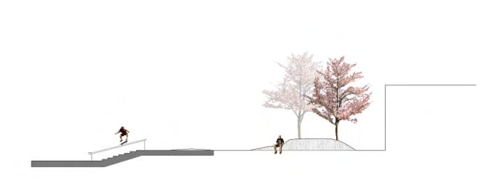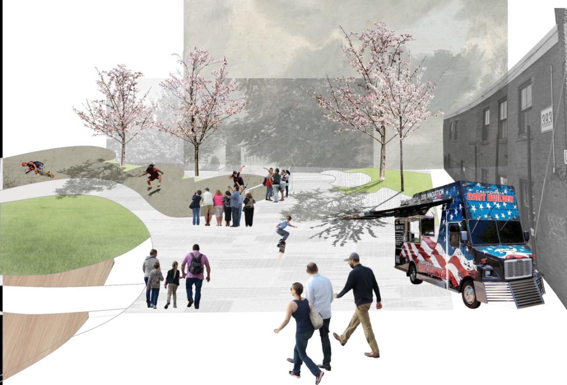A highway that runs through the city divides the Providence into two pieces, and the West faces many problems as a result. We are trying to bring new life to the area by developing tourism, tapping into the original local character, combining theater, sports and Spanish culture to make the West End more accessible to more people, while boosting the economy. With this master plan, I focused on combining surface runoff and sports in the outdoor spaces.