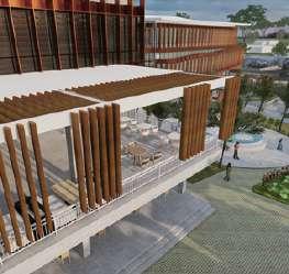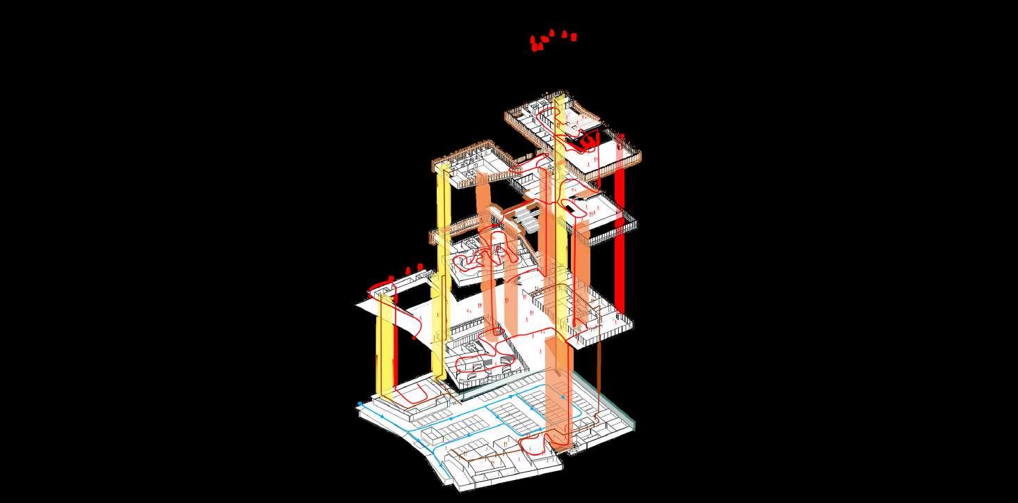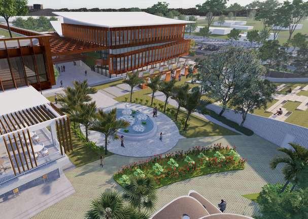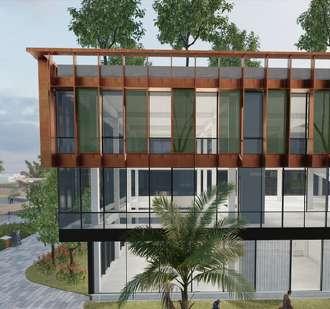 Mengusung konsep energi efisiensi bangunan dilengkapi dengan inovasi teknologi fasad micro alga yang digunakan untuk mengurangi polusi udara di dalam ruangan serta menghasilkan energi sisa yang dapat di manfaatkan untuk sistem bangunan.