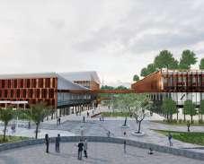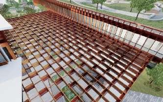 Menampilkan bangunan yang dengan tampilan bangunan di selubungi dengan material lokal yaitu baja. Jenis baja yang di gunakan adalah baja korten punya ketahanan tinggi terhadap cuaca, sehingga membutuhkan perawatan yang sedikit.
