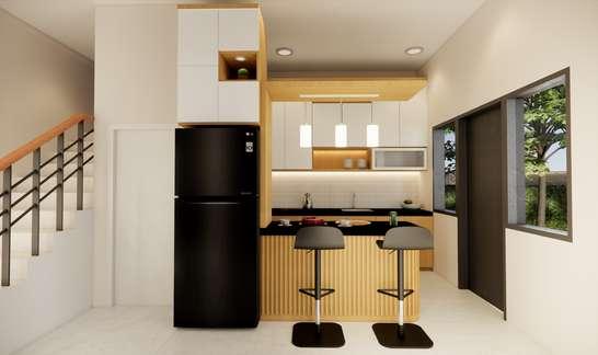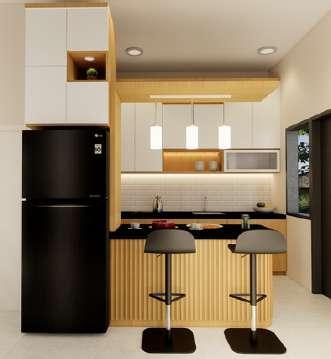 Perancangan desain interior pada ruang keluarga dan dapur dengan gaya desain Japandi. Warna-warna yang dominan dalam interior dengan warna netral dan earth tones menciptakan suasana yang tenang dan alami. Pada area ruangan dengan konsep open space untuk menciptakan kesan terhubung interior dan eksterior di sekitar memperkuat hubungan dengan alam dan menciptakan kesan ruang yang luas, fungsional, dan terang dengan aliran yang lancar antara area satu dengan lainnya.