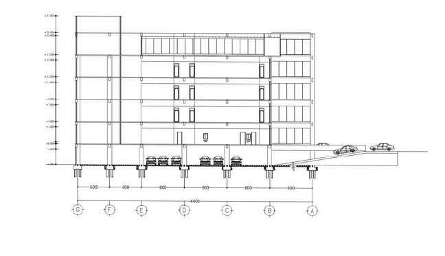 Akses menuju basement dan keluar basement satu arah dan kebutuhan parkir 80% dari jumlah kamar yaitu sekitar 640m2 luas parkir yag dibutuhkan.