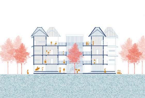 Bangunan hunian berintegrasi dengan masyarakat dan budaya setempat dengan empertahankan elemen yang ada di lingkungan sekitar untuk melangsungkan hidup, kegiatan berbudaya dan bermasyarakat