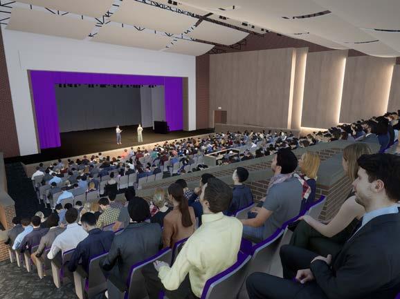 The new Fine Arts Center will support Guerin's exceptional STEAM curriculum and will include a 500-seat auditorium and a large group instruction room. Support space will include all the elements of a modern performance venue: scene shop, dressing rooms, green room, ticket office, sound room and a shared classroom. The Wellness Center will include a fieldhouse, a weight/fitness room, additional lockers rooms, a training room and a concessions area for the nearby athletic fields. A central lobby and gathering space will connect the Fine Arts Center, the Wellness Center and the existing high school.