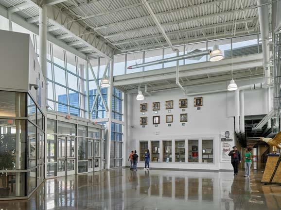 The STEM addition includes 57,000 SF of spaces for STEM education, including eight science labs, four prep rooms, an engineering lab, and rooms for robotics, fabrication, machinery and conceptualization. The addition creates a dramatic new contemporary image for the school.