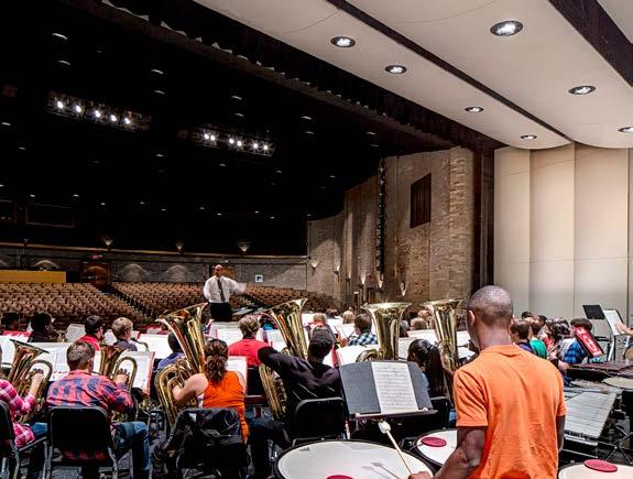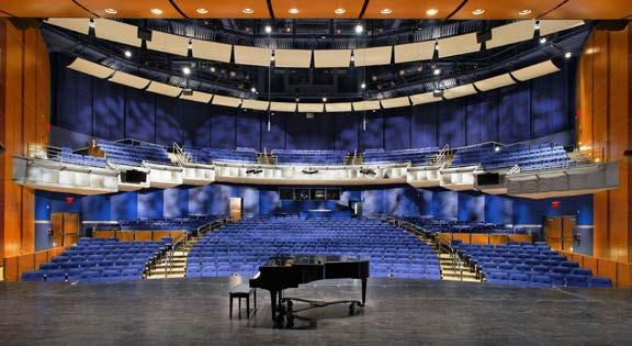 The school includes a commercial-style, 750-seat theatre and 300seat recital hall. The main theater, with its elaborate woodwork, large stage and great sight lines makes every seat the best seat in the house. Serving 1,350 students, the building has ample rehearsal space, professional grade dance studios, naturally lit art studios, music practice rooms, galleries, gathering areas and other facilities necessary to offer a learning environment designed specifically for the arts.