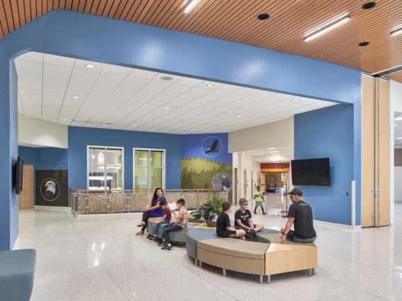 The design allows Granite to continue its departmental approach to high school education, but with an emphasis on next generation learning. In a break from the district's traditional double-loaded corridor schools, the design creates flexible, open space at the center of each learning community. The design increases the visibility of the school's media program by positioning it next to a study café, directly on the public square of the building.