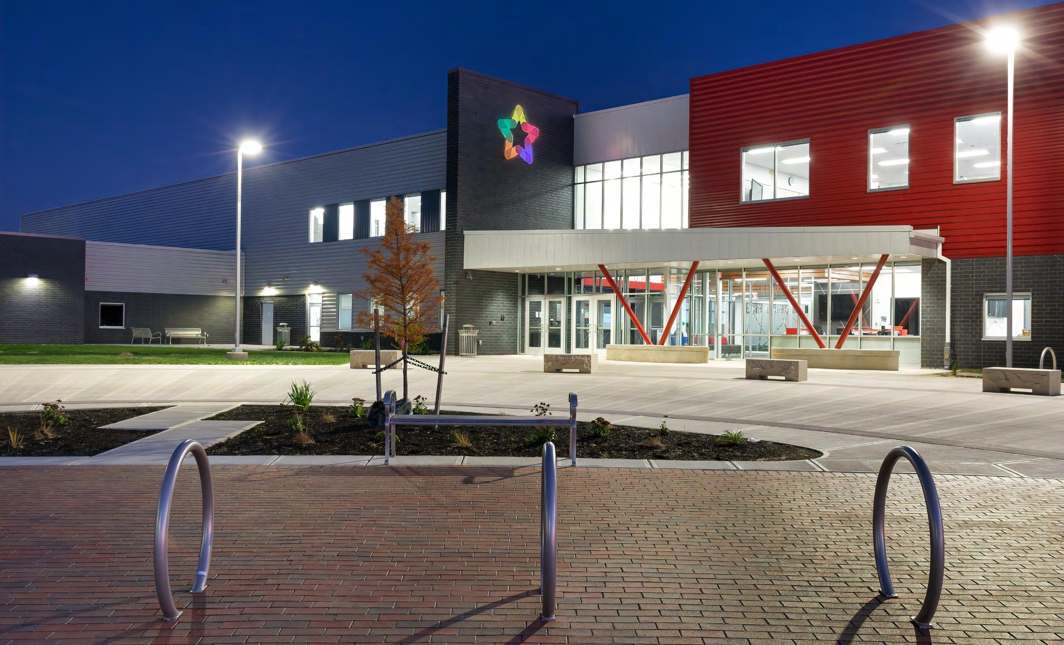 ABOVE | The bright and welcoming facade creates a sense of identity and pride for Tri Star students and teachers