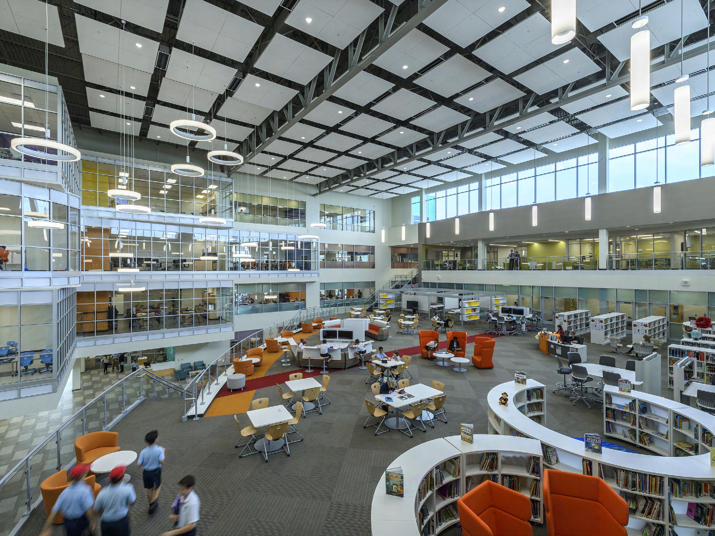 British International School of Houston is Nord Anglia Education's largest PK-12 school to date. Within the larger campus, the design creates a variety of personalized learning spaces where students collaborate, learn from each other and solve real world problems. A central Agora, state-of-the-art auditorium, specialized classrooms, makerspaces and science labs support Nord Anglia's collaboration with organizations such as MIT and The Julliard School to deliver exceptional education.