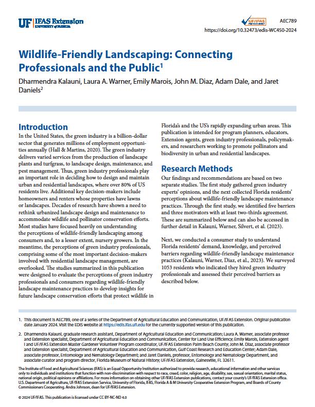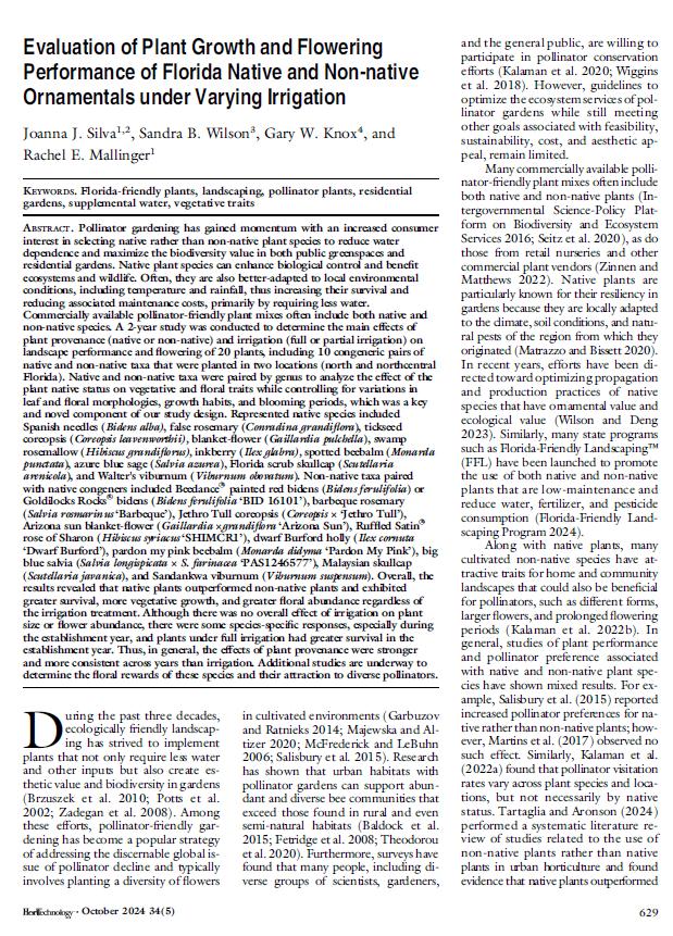 The study contributes to the broader effort of promoting sustainable landscaping, especially through the use of native plants that are more resilient, water-efficient, and beneficial to pollinators