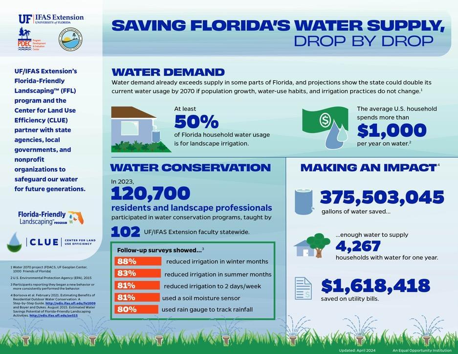 • Water needs are projected to increase in Florida, so conservation is key to meeting future demands