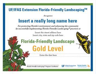 When your landscape is ready, contact your local UF/IFAS Extension office to schedule a site evaluation. If your local county does not do landscape recognitions, contact the FFL state office.