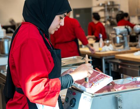 The School of Tourism, Hospitality and Culinary Arts, located in the heart of downtown London, Ontario, includes a state - of- the - art culinary lab, known as the Spriet Family Culinary Centre. In this lab, students learn from expert pastry chefs and bakers how to create modern-style desserts. They work on intricate, high-skilled patisserie products including artistic showpieces.