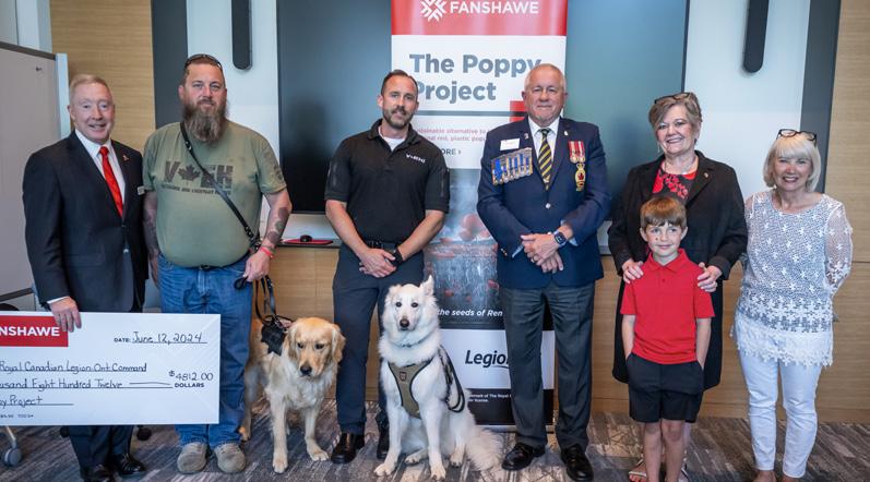 Fanshawe donated more than $4,800 raised from The Fanshawe Poppy Project to The Royal Canadian Legion with veteran service dogs in attendance.