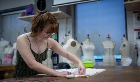 She also worked with her sister Emilee to create a custom dress for a personality contest Emilee was entering. “It was a really good experience because I know these are a lot of the same skills I’m going to be using in my final year, doing fittings and working to make clothes for others,” Hannah says.