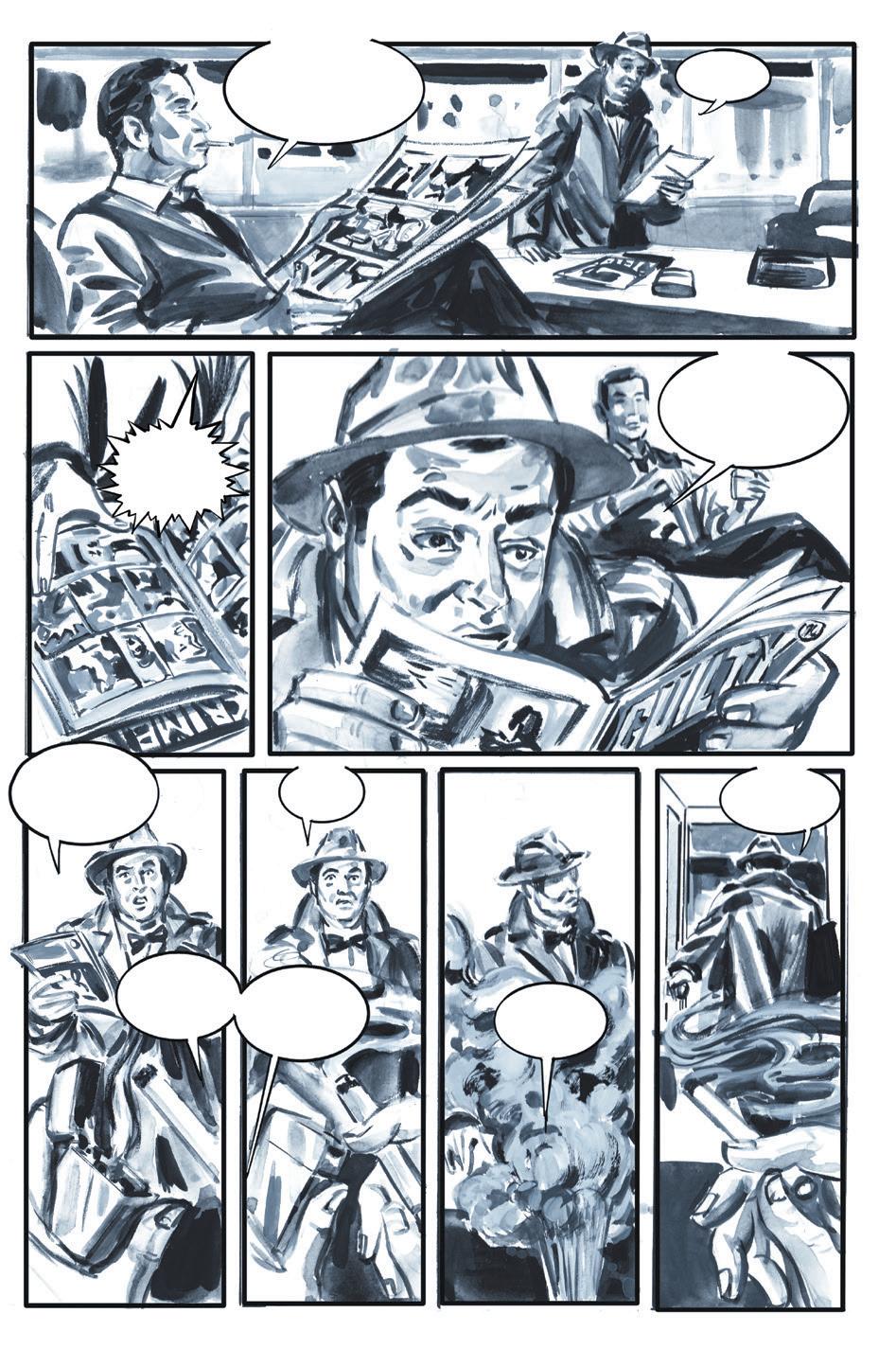 Still... î could try to have a little fun with this crime story, if î overlap the protagonist's figures throughout this inane story, î can create a flow of action, kind of like a Japanese print.