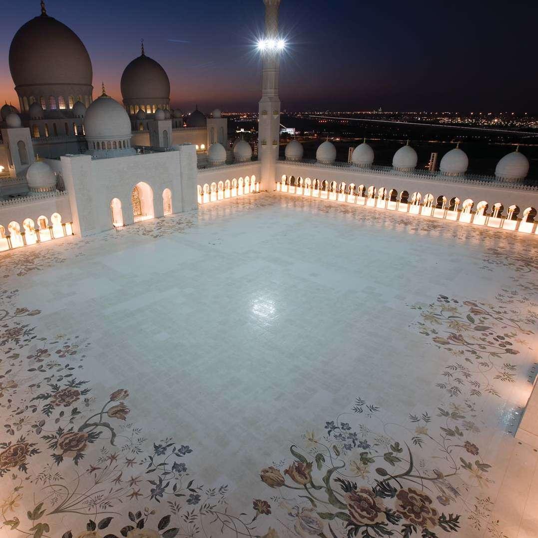 Nel 2004, Sheikh Sultan Bin Zayed, responsabile del completamento dei lavori di finitura della Grande Moschea di Abu Dhabi, invitò Fantini Mosaici a lavorare ad un progetto la cui realizzazione rappresentava la sfida più notevole che l’azienda si fosse mai trovata ad affrontare fino ad allora. Fantini Mosaici decise tuttavia di realizzare, una volta valutate le caratteristiche del progetto, le aspirazioni e le complesse richieste progettuali. Lo Sceicco era stato guidato e ispirato dalla visione del padre per il completamento della costruzione della Grande Moschea.