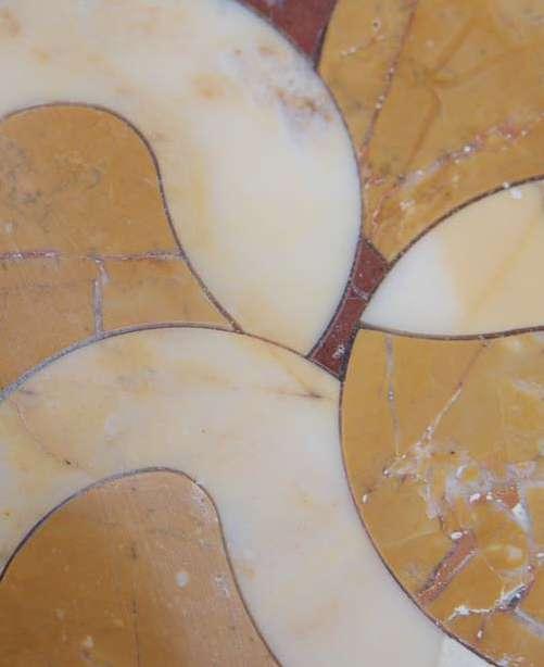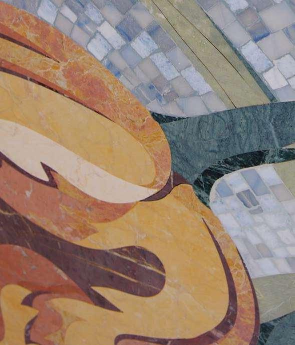 particolare di pannello eseguito in mosaico di marmo sfumato. details of one of the panels made with shaded marble mosaics.