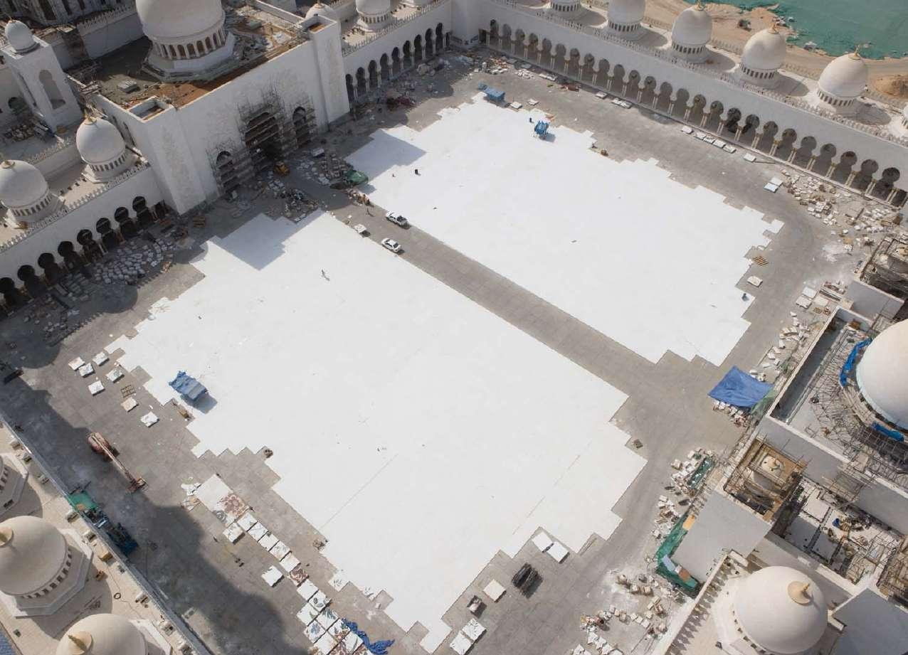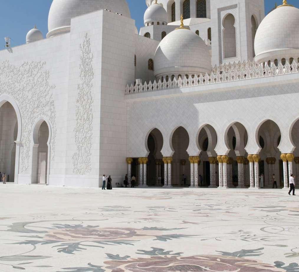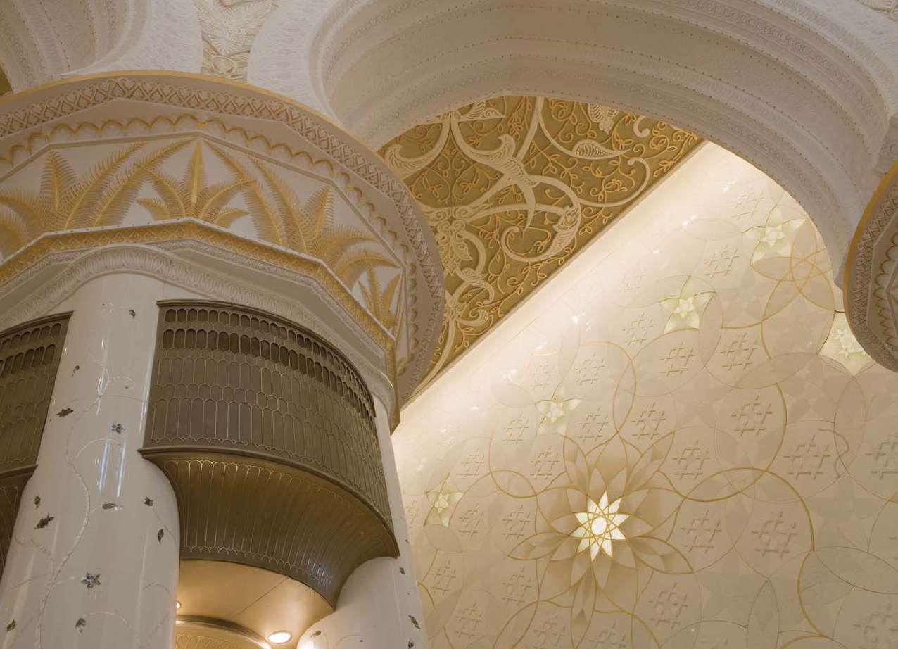 Una volta ad Abu Dhabi, Fantini Mosaici fu impressionata dall’imponente struttura del sacro edificio e dalla squisita raffinatezza dell’architettura religiosa nelle città arabe e islamiche in genere. Inizialmente fu consultata su una parte limitata del progetto, quella che nelle intenzioni del committente ci sarebbe stata affidata. Tuttavia, nel corso di quello stesso anno, Fantini Mosaici concorse all’appalto pubblico per tutti i lavori attinenti i mosaici in marmo da posare all’interno della Moschea. Dopo un lungo iter burocratico e l’espletamento di complesse procedure amministrative, Fantini Mosaici si aggiudicò l’appalto.