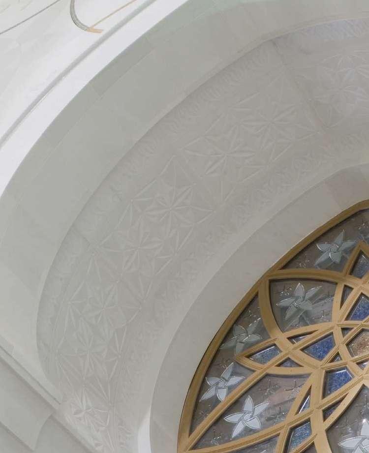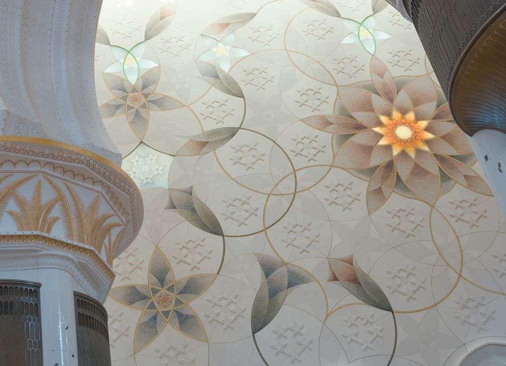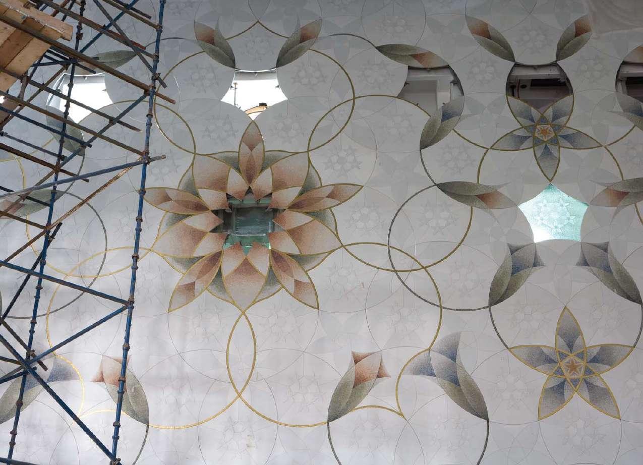 dettaglio del motivo floreale della “grande sala della preghiera”. details showing the flower motifs installed on the “main prayer hall”.