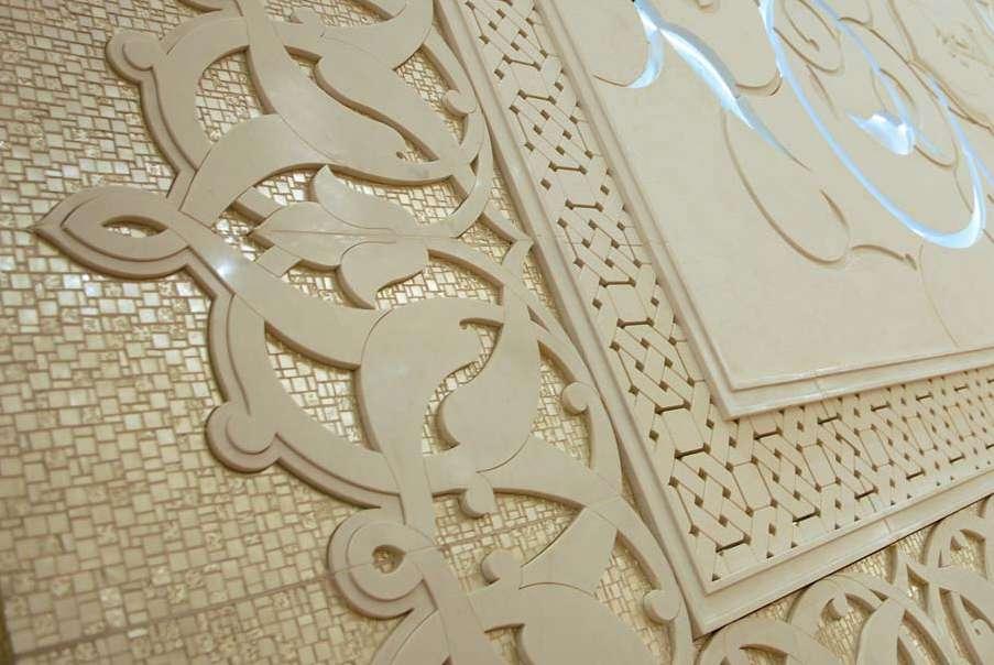 Pannello in marmo water jet inlay per La Grande Sala della Preghiera. Panel of the Marble water-jet inlay for the Main Prayer Hall.