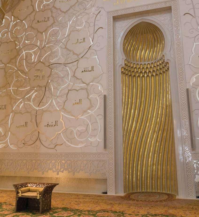 present a distinct icon. Superior quality Italian materials and craftsmanship were sourced, worked and exported to contribute the construction of the third largest Mosque building in the Arab World.