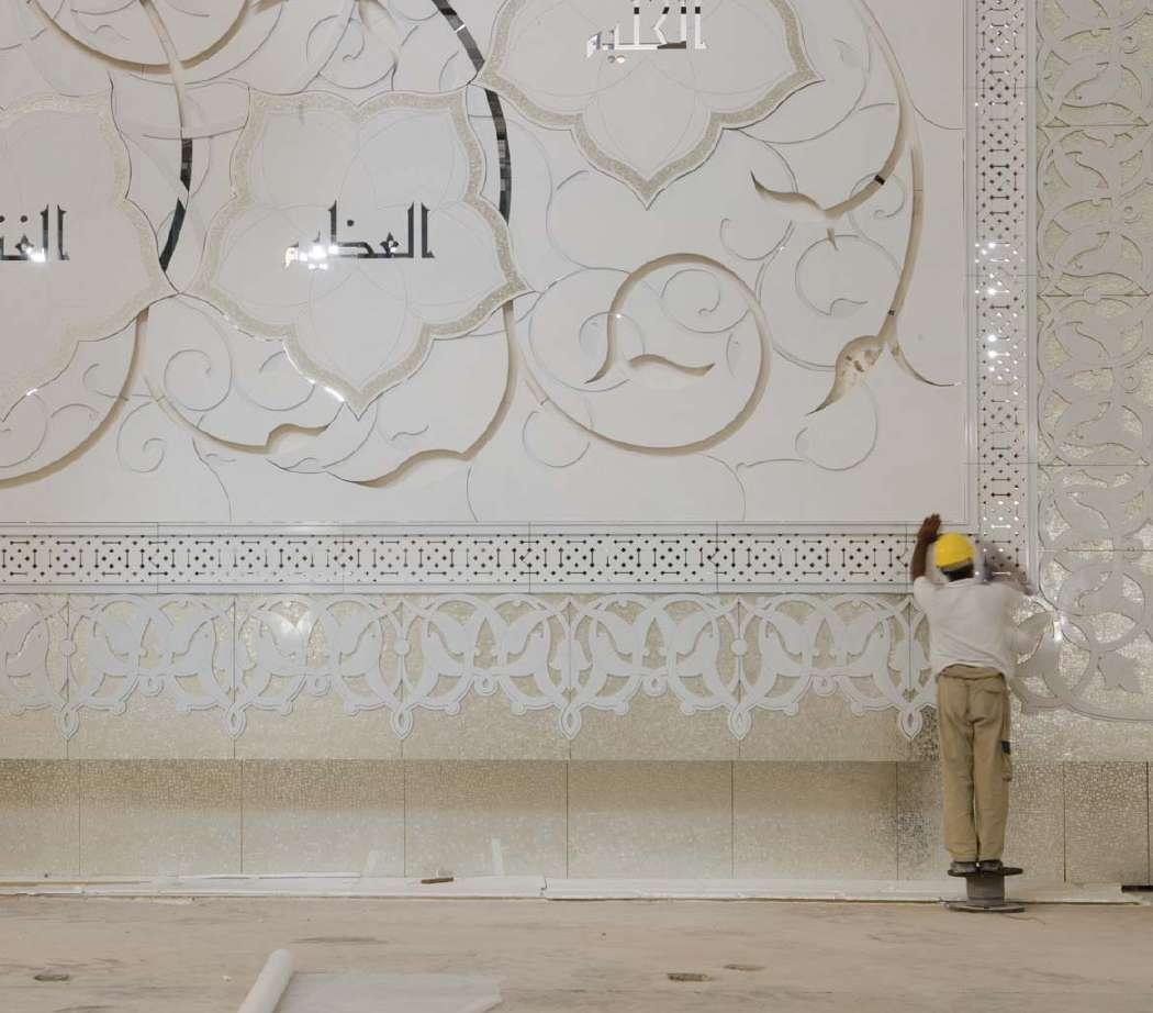 In Abu Dhabi, Fantini Mosaici employed a work force of nearly 700 people. Indian, Chinese, Pakistani, Vietnamese, Sri Lankan, and other Asian Nationals, formed a multicultural team, that delivered the job on site. A constant Italian team was based in Abu Dhabi for the entire period, to oversee the project management.