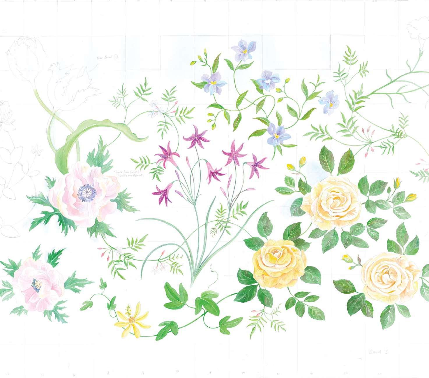 Il tema floreale è stato pertanto sviluppato in tutti gli spazi con variazioni cromatiche, materiche e di disegno.