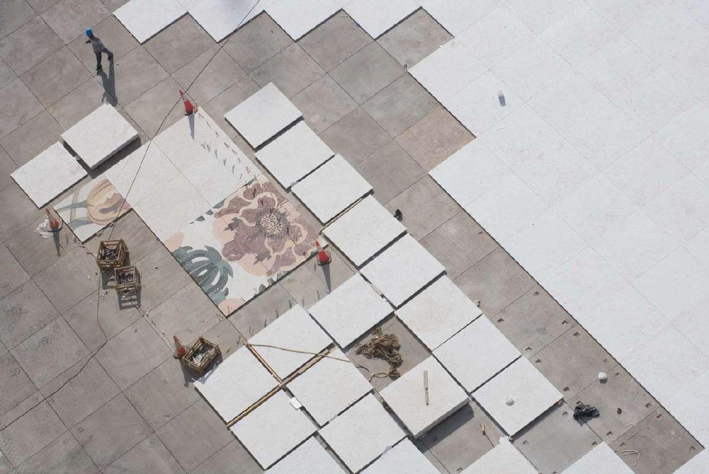 British artist Kevin Dean designed and presented the conceptual scheme for the courtyard, after the Client’s design brief for a ‘flower courtyard pavement’. Fantini Mosaici worked on developing the design for execution with the artist, and prepared the detailed-working drawings. Covering a surface of 17,500 sqm dressed in plain marble mosaic, the intricate marble flower inlay border framing the central area, was water-jet cut. The finished floor area produced, adorned in marble and precious stones, is the largest mosaic carpet made to date.