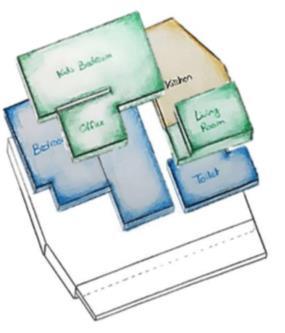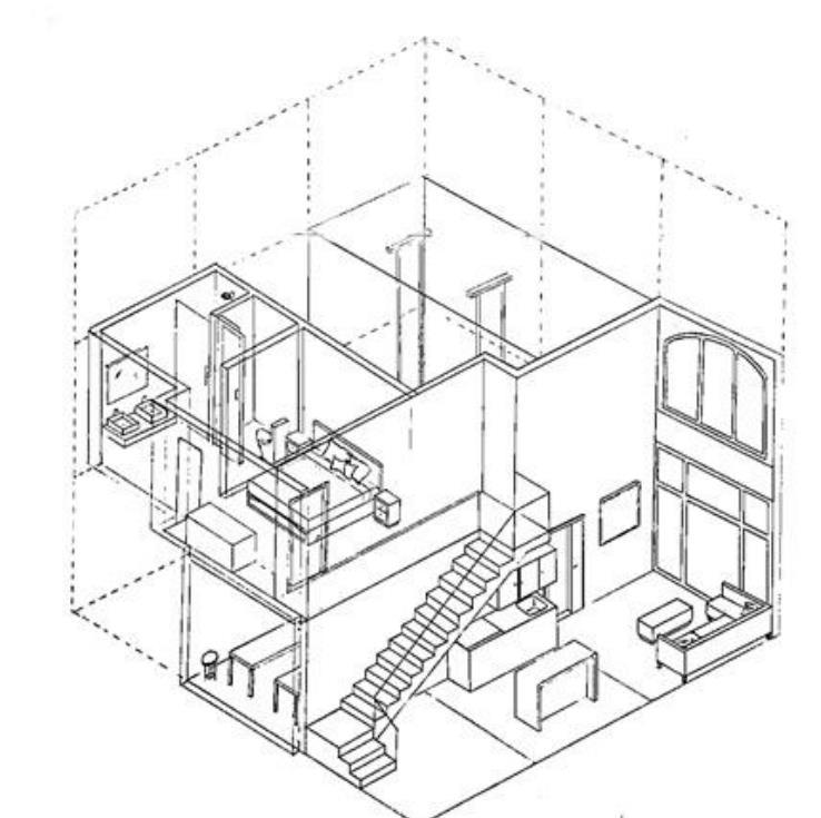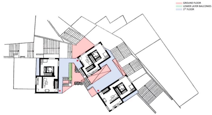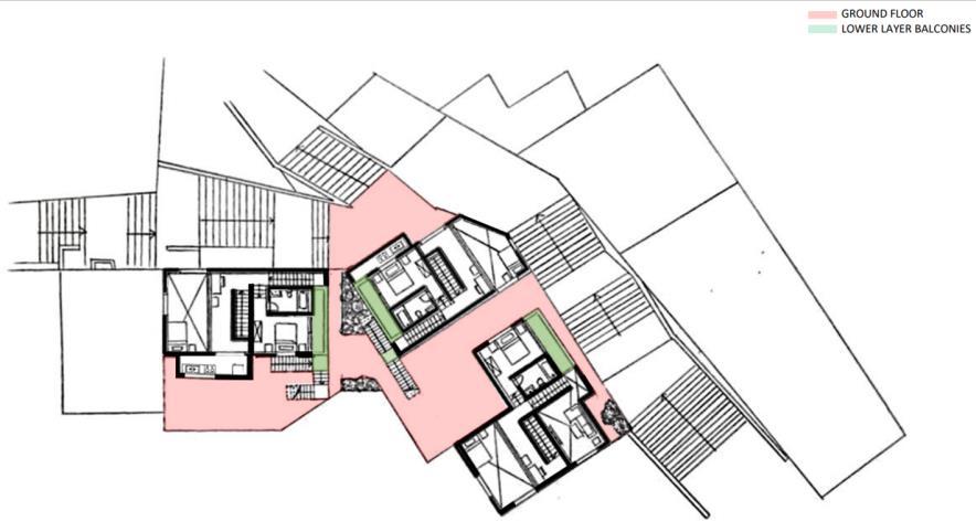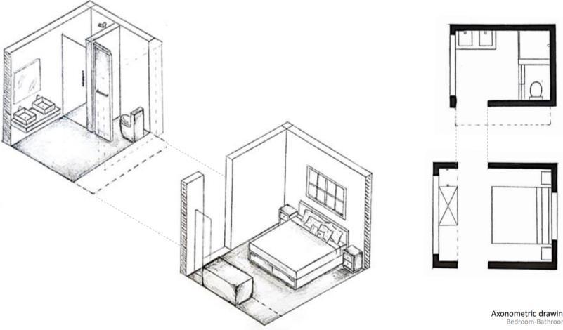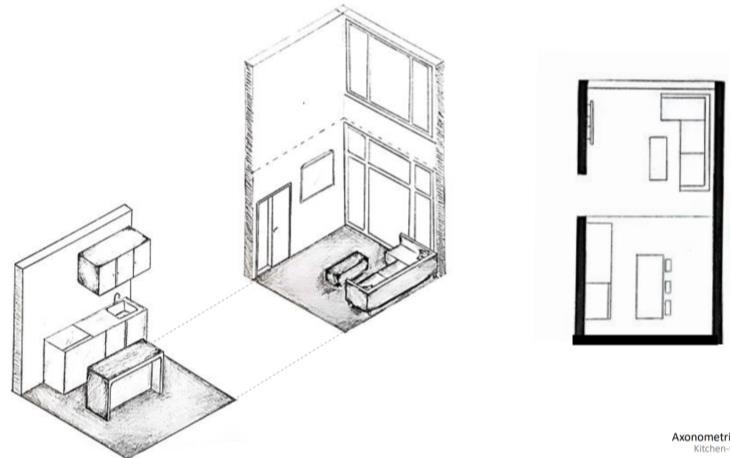 A system of six units from two main units that have been rotated, flipped, and stacked. Each unit accommodates for a millennial and an elderly who live together. Spatial moments have been created to allow the millennial to have constant visual connection over the elderly even when not in the same space.