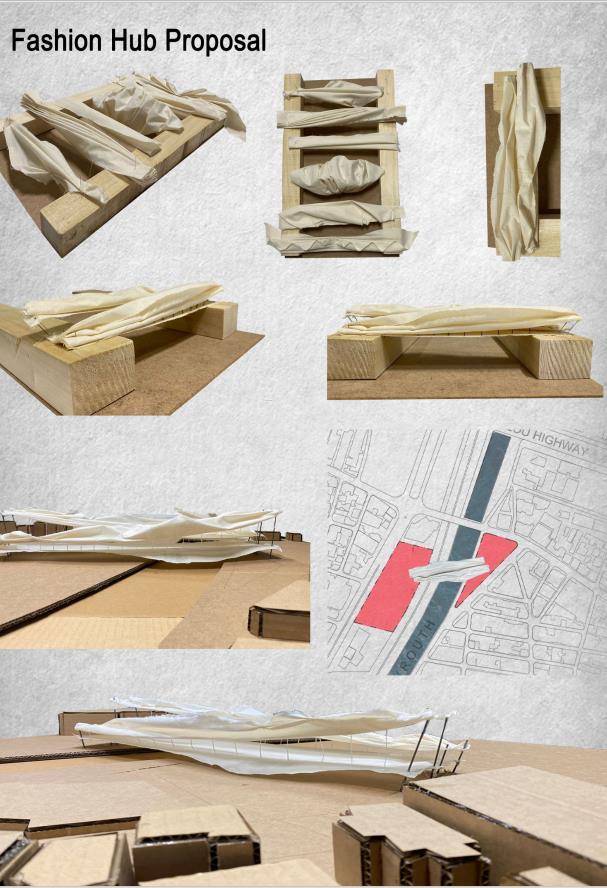 Connecting creative industry (end product/sale) to sophisticated craftsmanship (raw materials/production). Creating this connection between these two areas combines not only the physical aspect but also the merging of their skills that would create an innovative hub of multidisciplinary talents. The fashion hub will create new job opportunities, business opportunities, public spaces, and enable the river bringing back life to it. “Self sustaining strategy for the neighborhood”