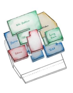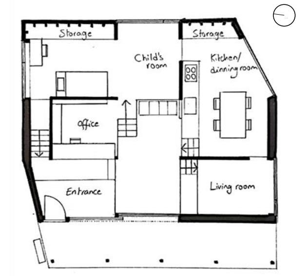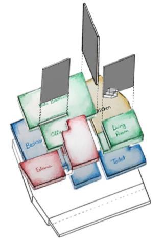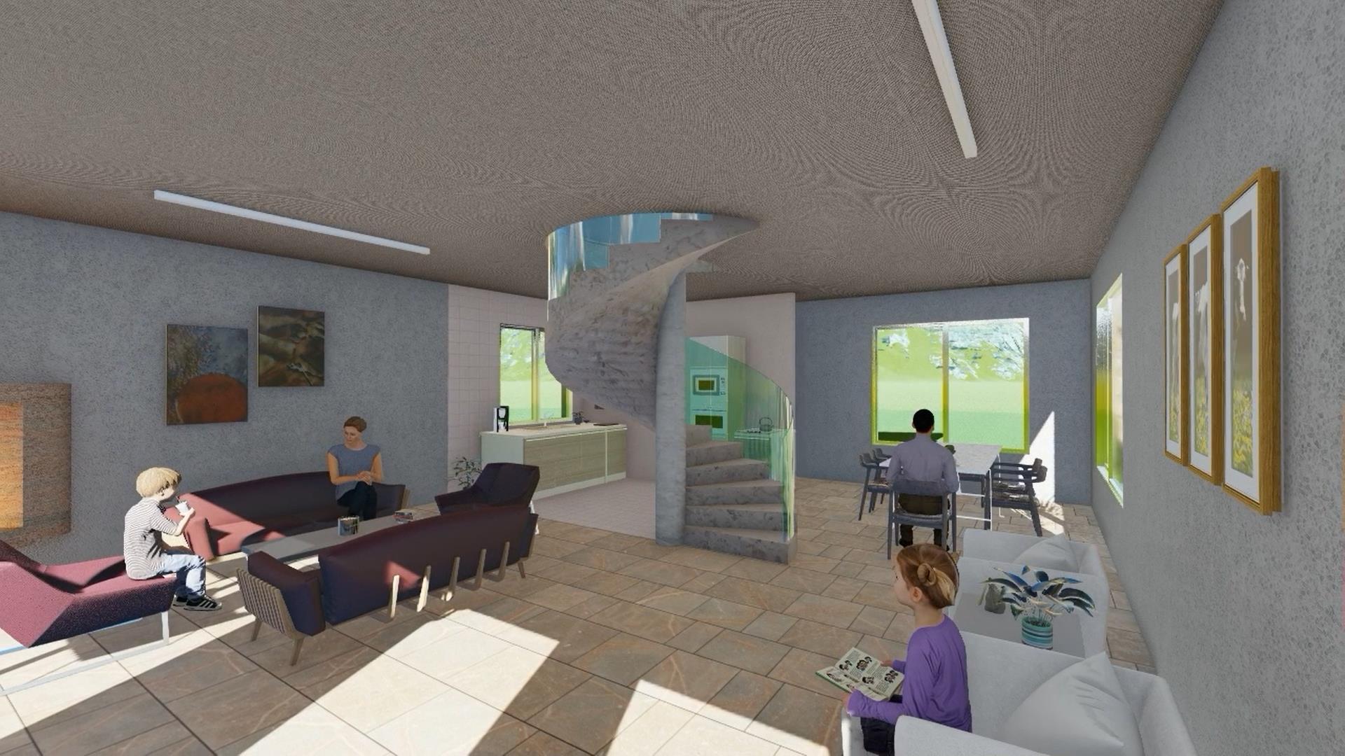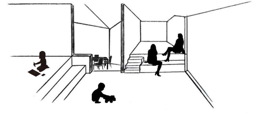 Our concept was and open space with wall modules separating the space and acting as functional elements within the space.