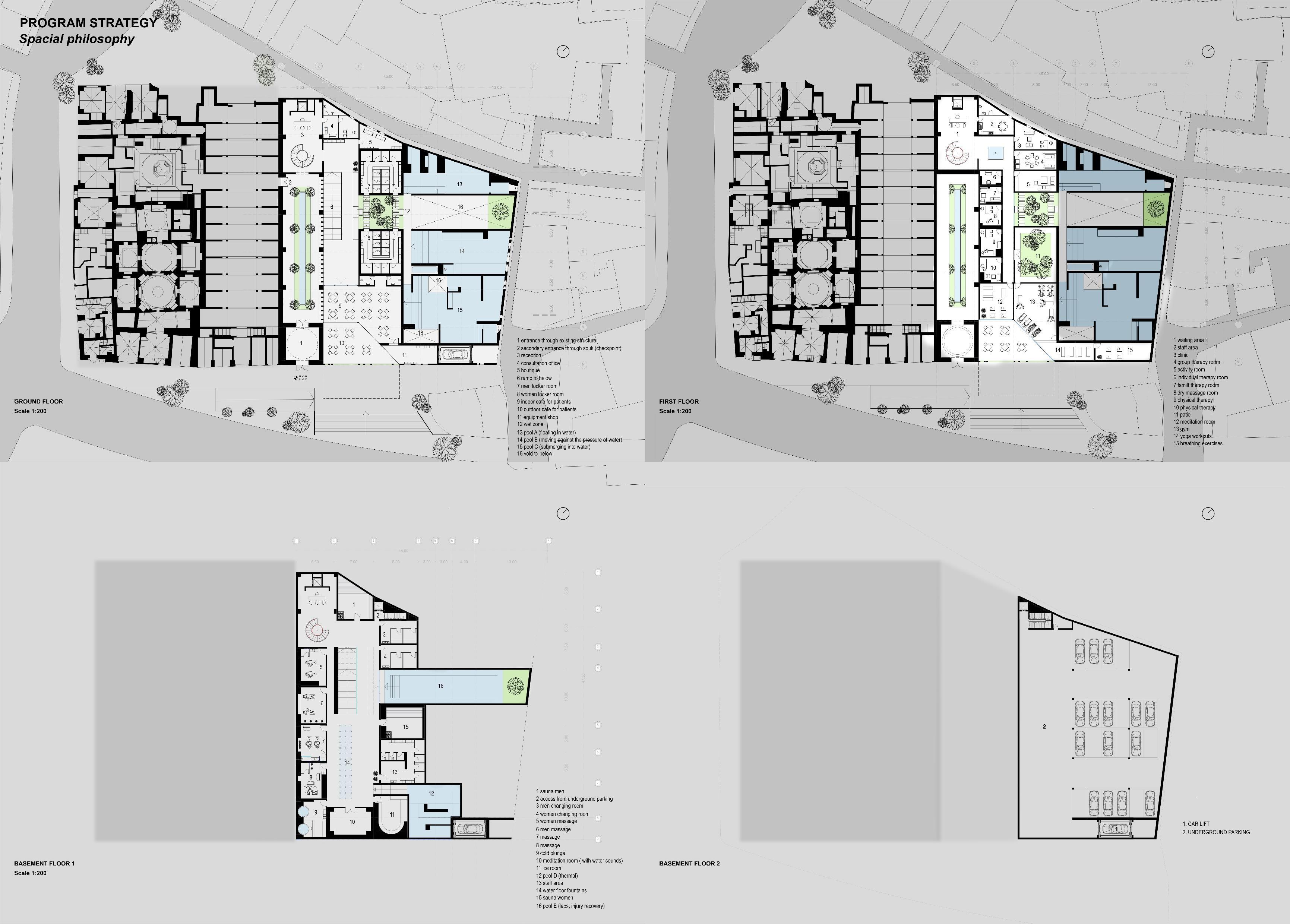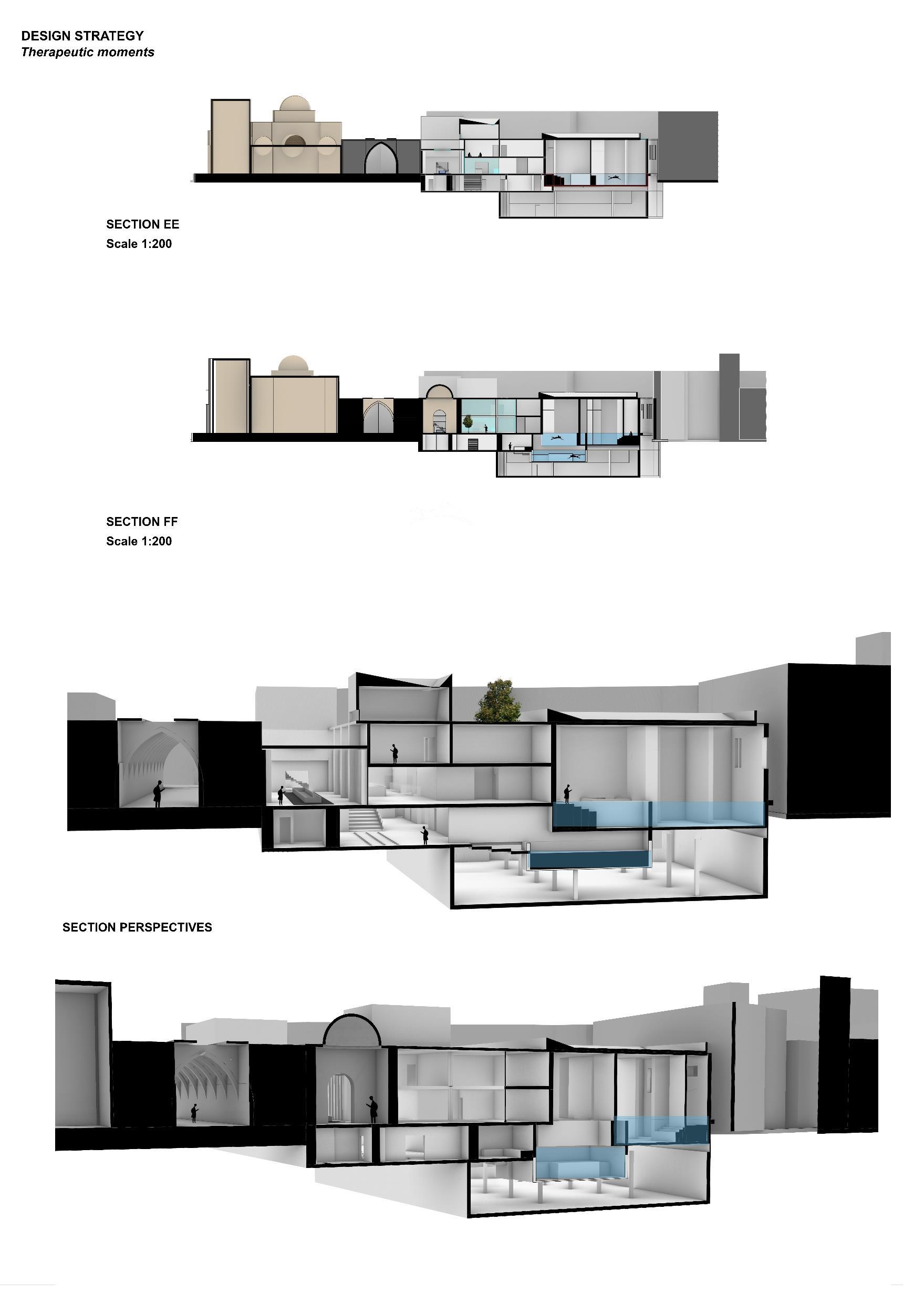 The heritage of the Hamman is composed of two aspects, the function of the hammam, water therapy, and the social presence it has in its surroundings. My program will consist of an intervention near the hammam that will host a modern hydrotherapy center while connecting to the souk and the social area of the Hammam.