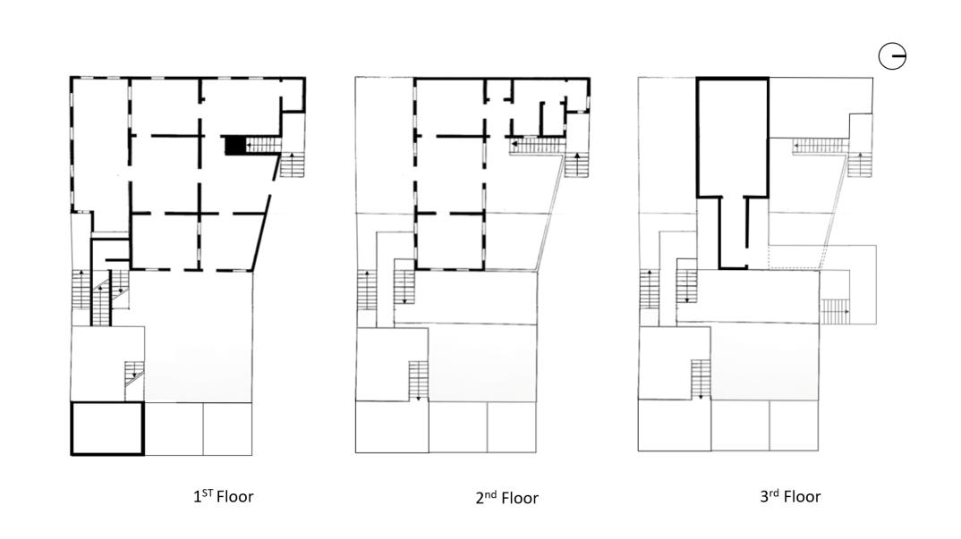 Traditional aged house turned into a museum. Transitional spaces exhibited through photography showcasing the evolution of spatial qualities and the exploration of level hierarchy.