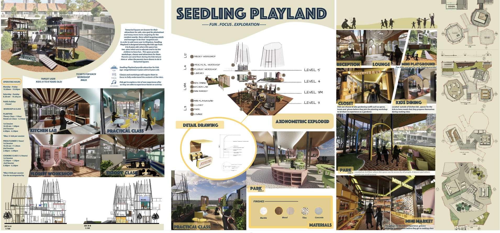 Tamarnd Square, renowned for its appealing cafes, picturesque spots for photoshoots, and an array of stores targeting nearby residents, prmarily focuses on attracting adults and teenagers as its user base To further enhance the appeal and increase user dversity, Seedling Playland has been introduced as a dedicated space for chidren aged 4 to 8 years old This purpose-designed area serves a dual objectve: providing education and ensuring chldren have a fun-filled experience The playland offers workshops, classes, and engaging attractons tailored to the nterests and learning needs of young chidren Ths allows parents to convenently send their kids to enjoy leisure time or attend classes while they attend to their tasks and actvities wthin Tamarnd Square By ntroducng Seedlng Playland, Tamarind Square not only caters to the needs of aduts and teenagers but also promotes a famiy-friendly environment, attracting a wider range of vsitors and establishing itself as a holistc destnation for all