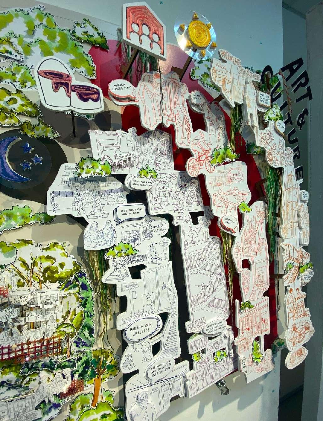 Shows rich visual space programming of the potential placemaking space; activity. characteristics, and its elements in narrative/stories manner. You are required to come out several keywords min 3 and max 5 that will help to guide in visualizing the conceptual elements.