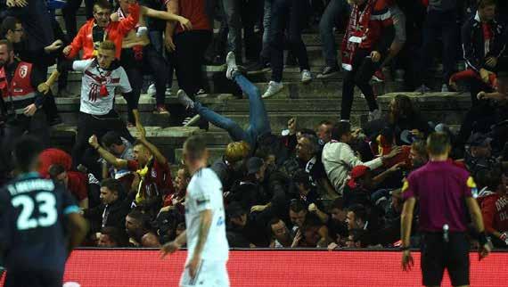 Le tragiche immaigni dello stadio di Amiens. Fortunatamente solo qualche ferito.