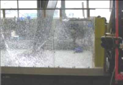 Prova di impatto al centro e allo spigolo di ogni pannello in vetro (6 impatti in totale).